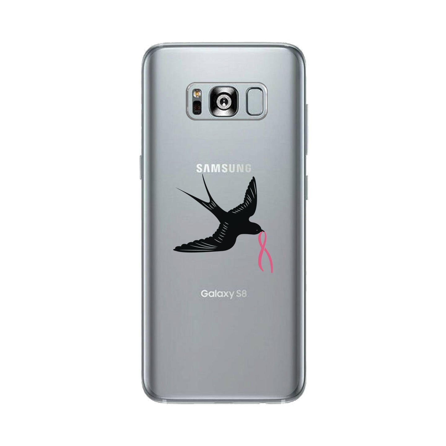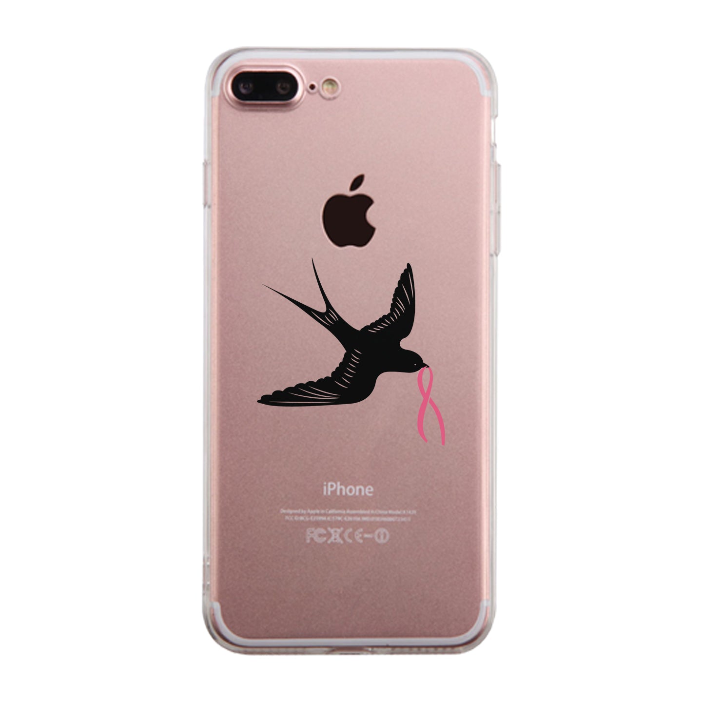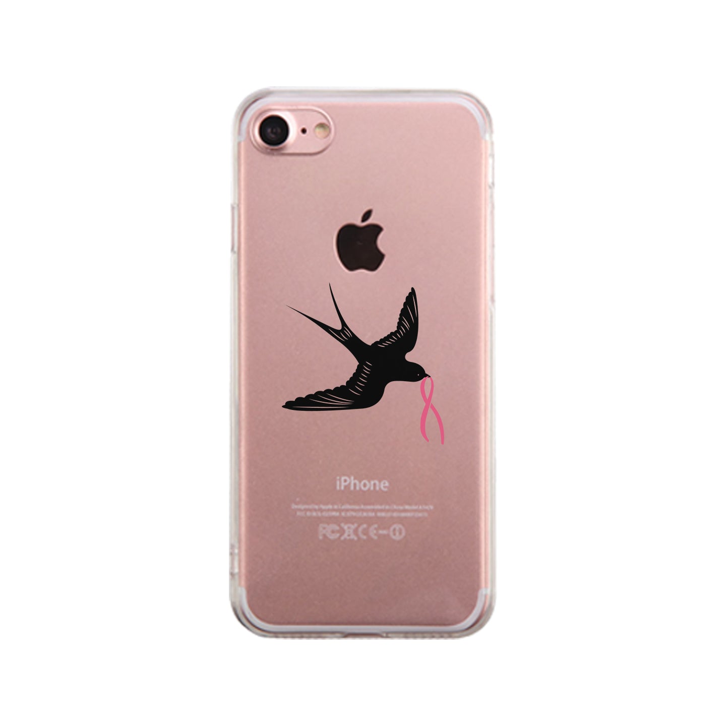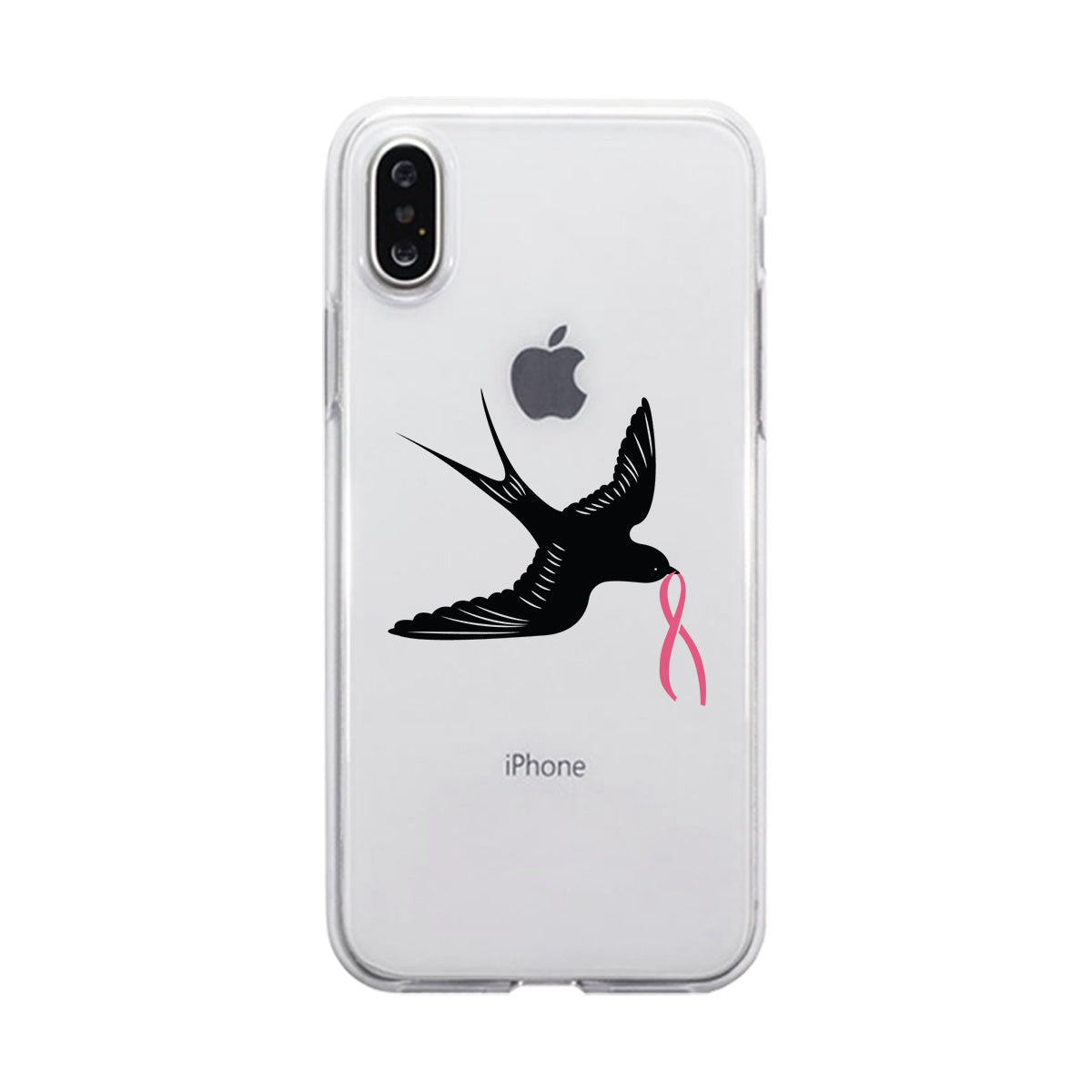 Pink Ribbon And Swallows Birds Clear Phone Case