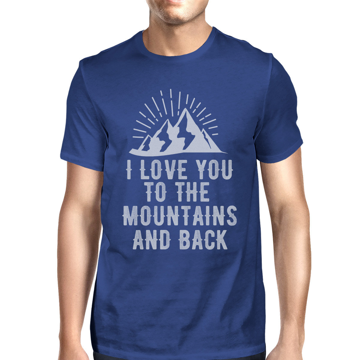 Mountain And Back Men's Blue Short Sleeve Round Neck Cotton Tee