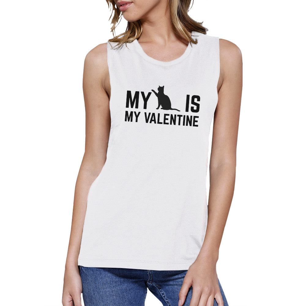My Cat My Valentine Womens White Muscle Top Gift Idea For Cat Lover