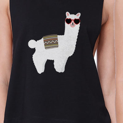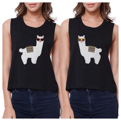 Llamas With Sunglasses BFF Matching Black Crop Tops