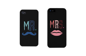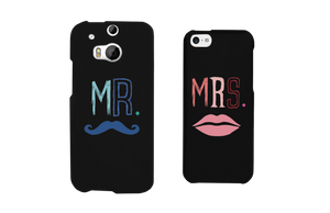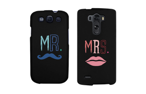Mr Mustache and Mrs Lips Black Matching Couple Phone Cases Wedding Gift